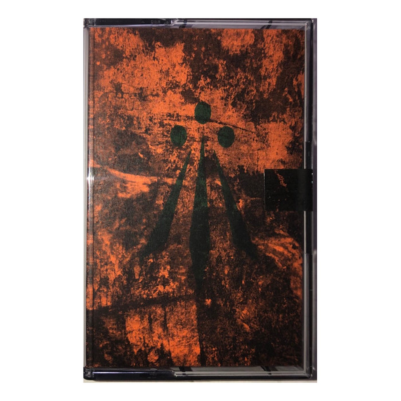 Chrome c40 in Norelco case with B5 double-sided foldout poster j-card. Case color, artwork/layout, and paper colour varies per copy. Transparent tape labels must be cut to access tape spools for playback.